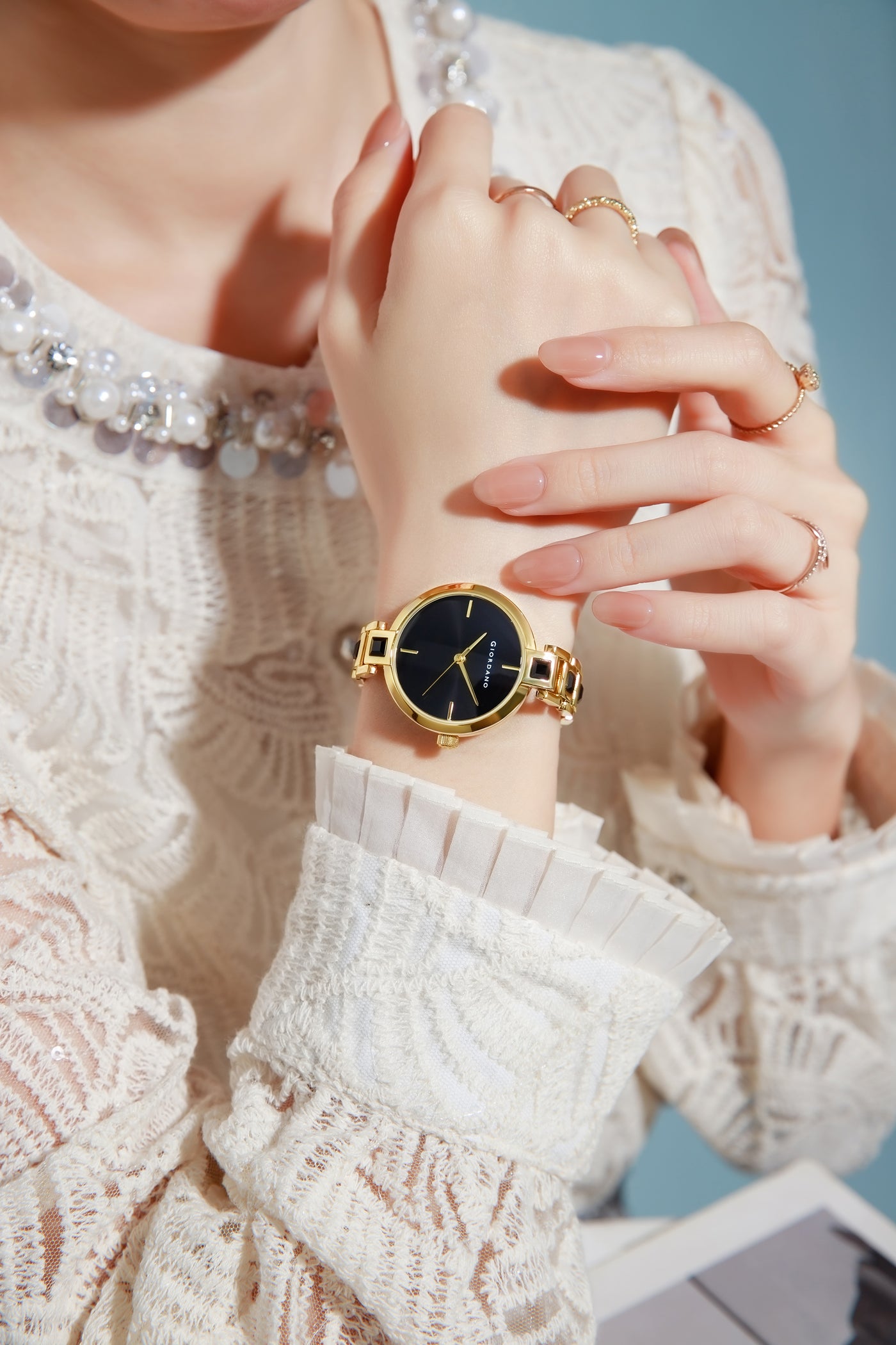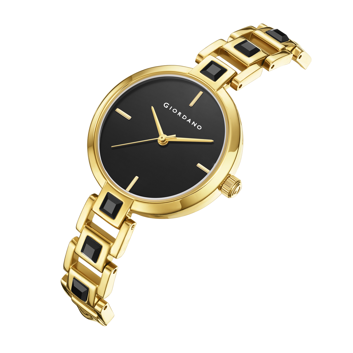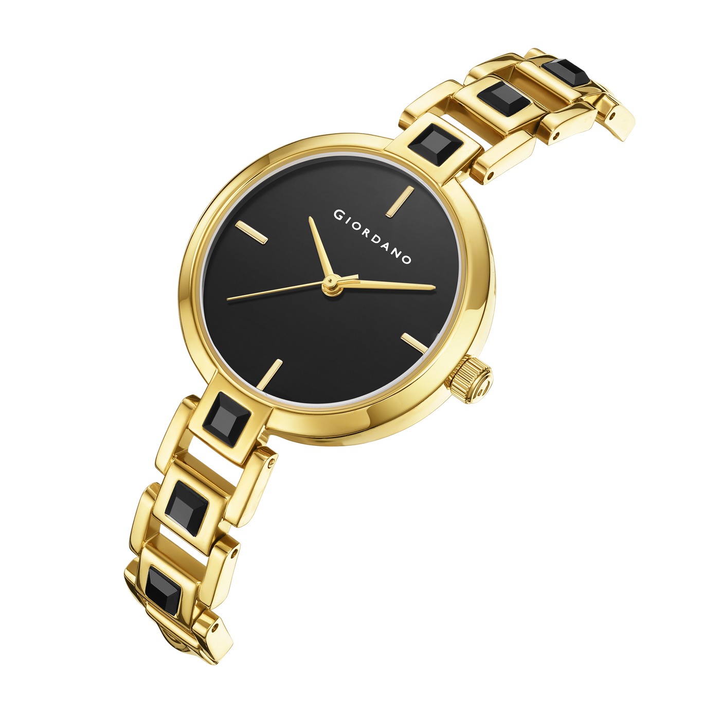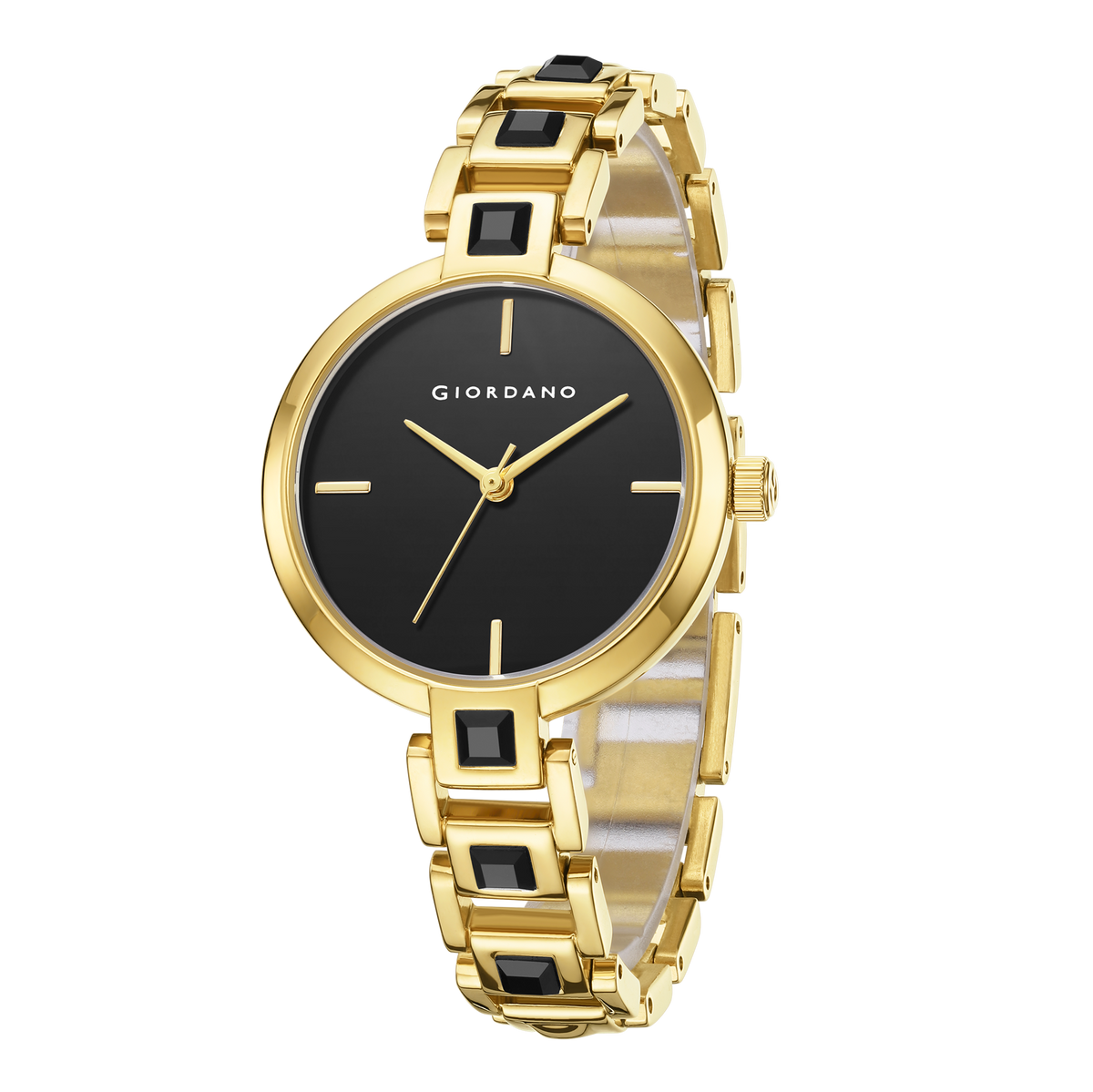 Giordano Luxury Watch for Women – Sleek Dial with Gold Accents and Two-Tone Stone Studded Stainless Steel Strap | GZ-60088-11