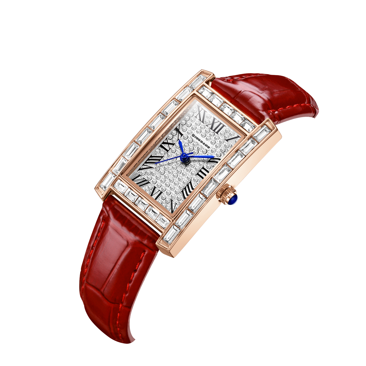 Giordano Rectangular Dress Watch for women with Crystal Bezel, roman indiced and Sparkling Dial | GZ-60119-01