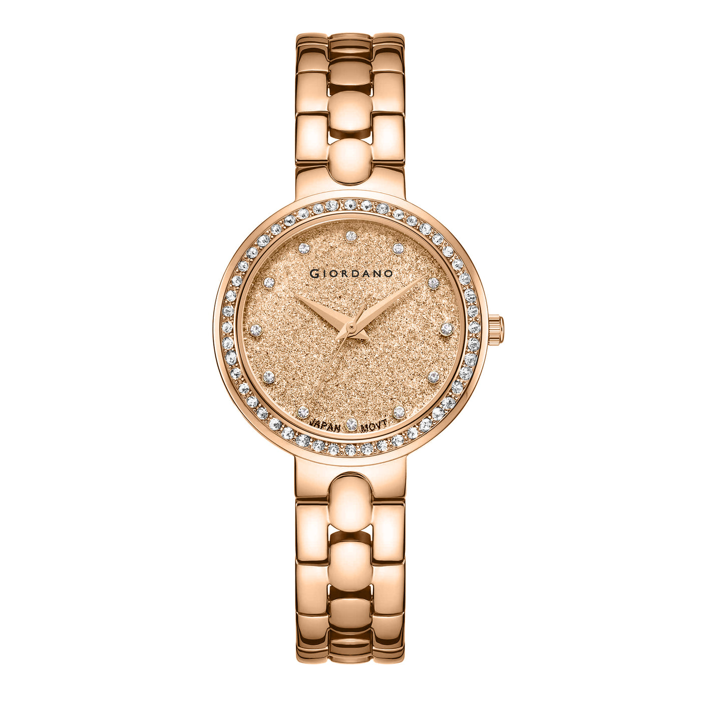 Giordano Silver Shimmer Collection Analog Watch for Women with Diamond Studded Case, Shimmer Dial and Stylish Stainless Steel Strap A2068-77