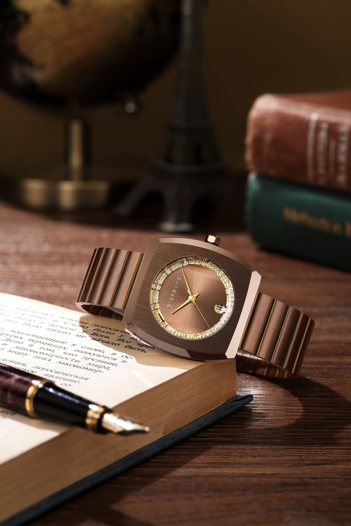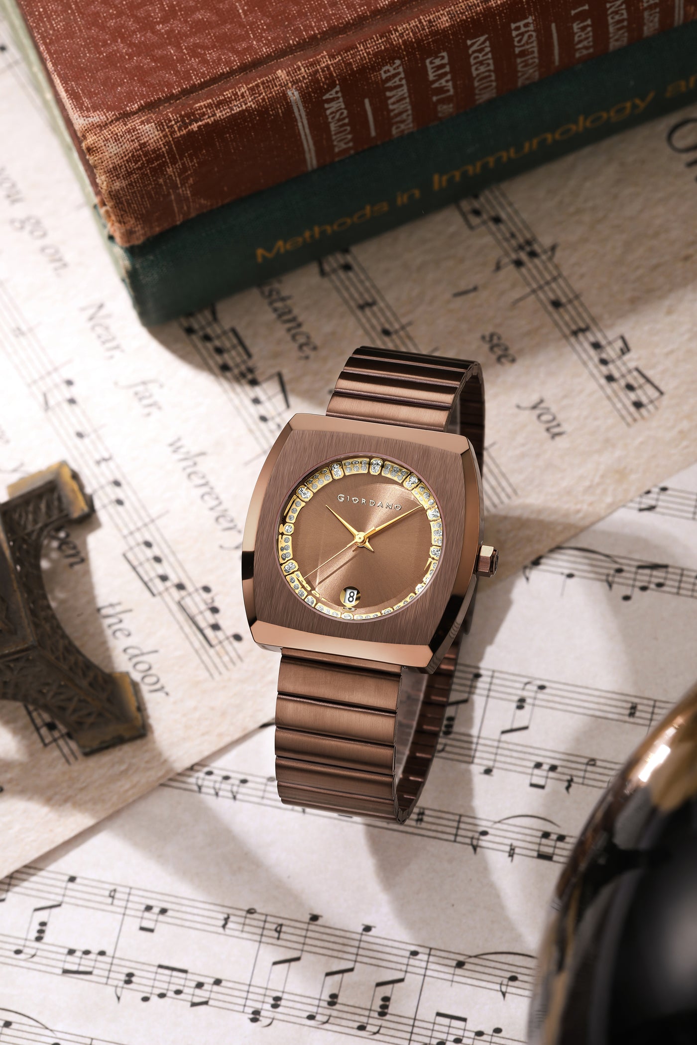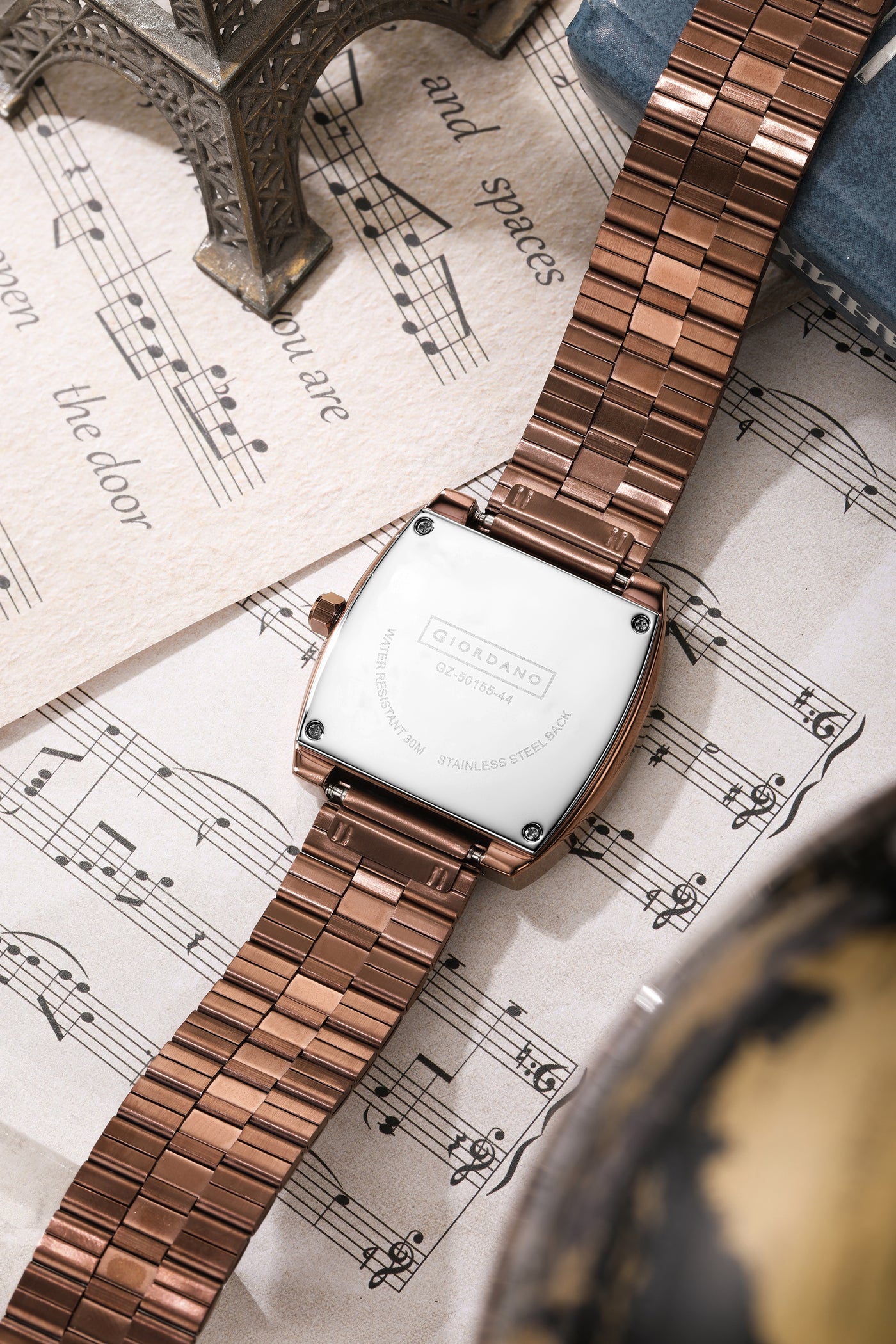 Giordano Square Analog Watch for men – Sunray gloss Dial with Crystal Hour Markers, Date Display & Stainless Steel Strap – Stylish Luxury Timepiece | GZ-50155-44