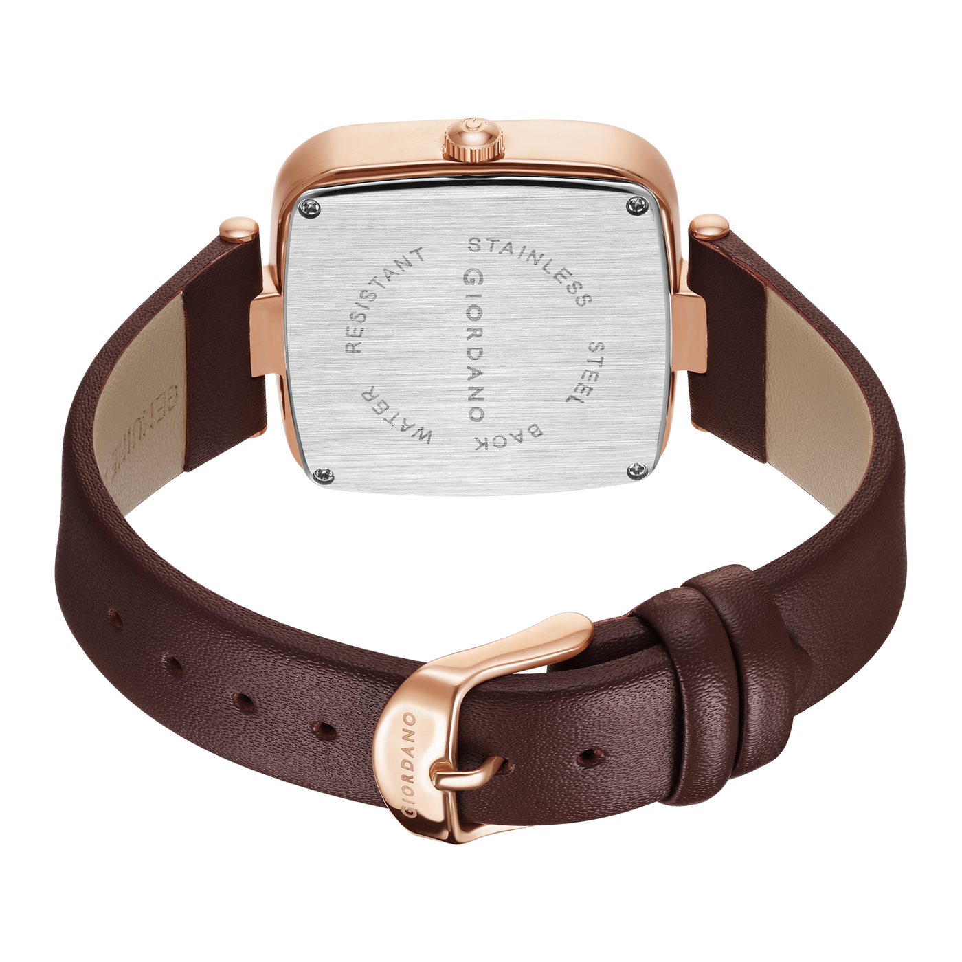 Giordano Square Dial Watch for women with leather strap and Premium Quartz moevment-GZ-60089-02