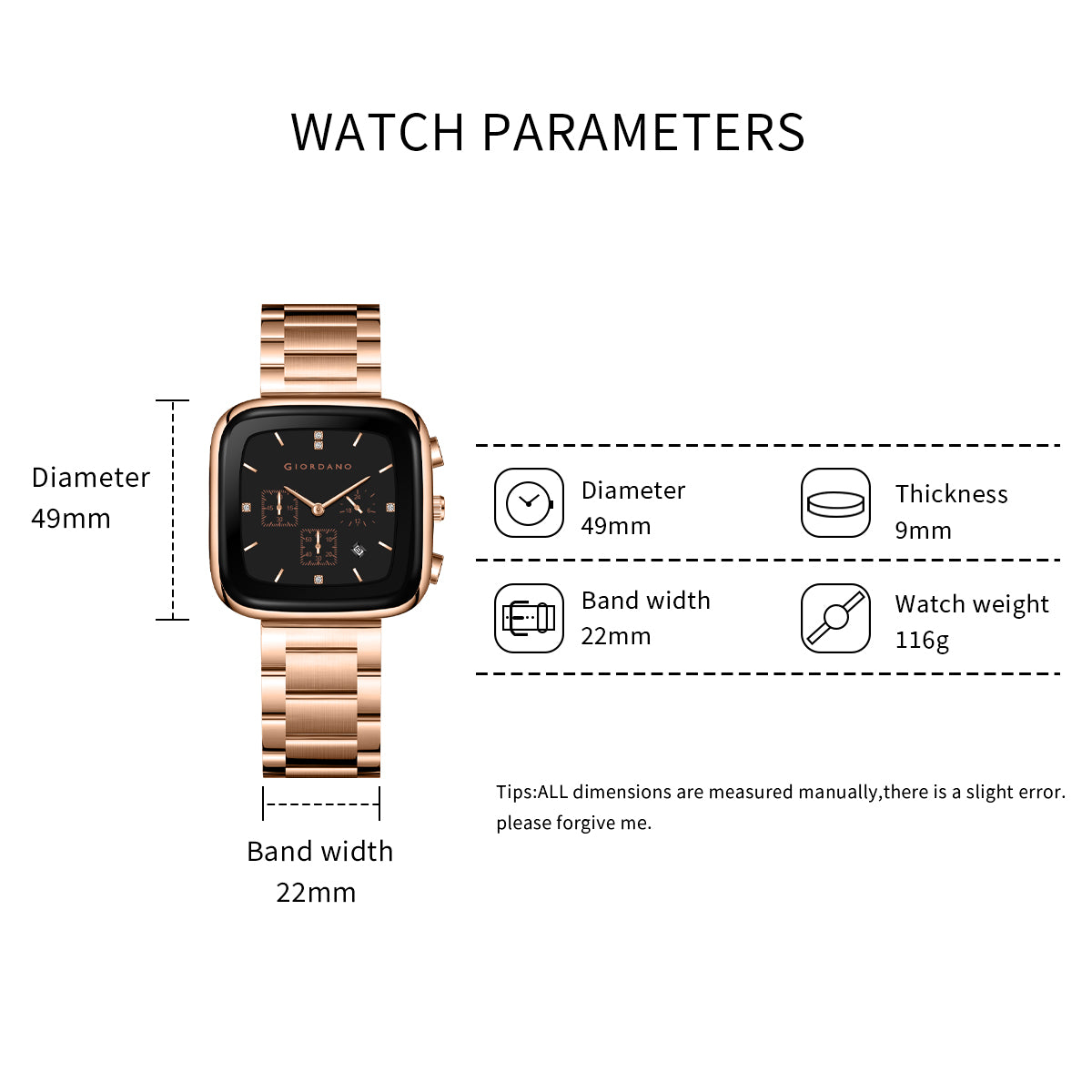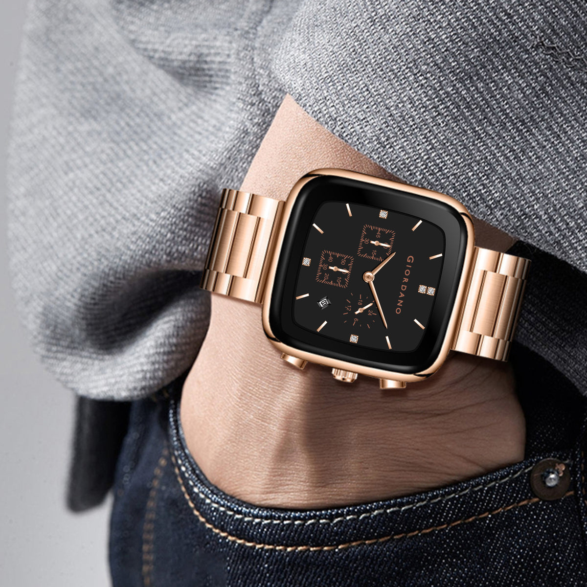 Giordano Square Face Watch for Men – Multifunction Dial with Date Display, Sleek Stainless Steel Strap, Modern Design for Everyday Elegance | GZ-50162-55