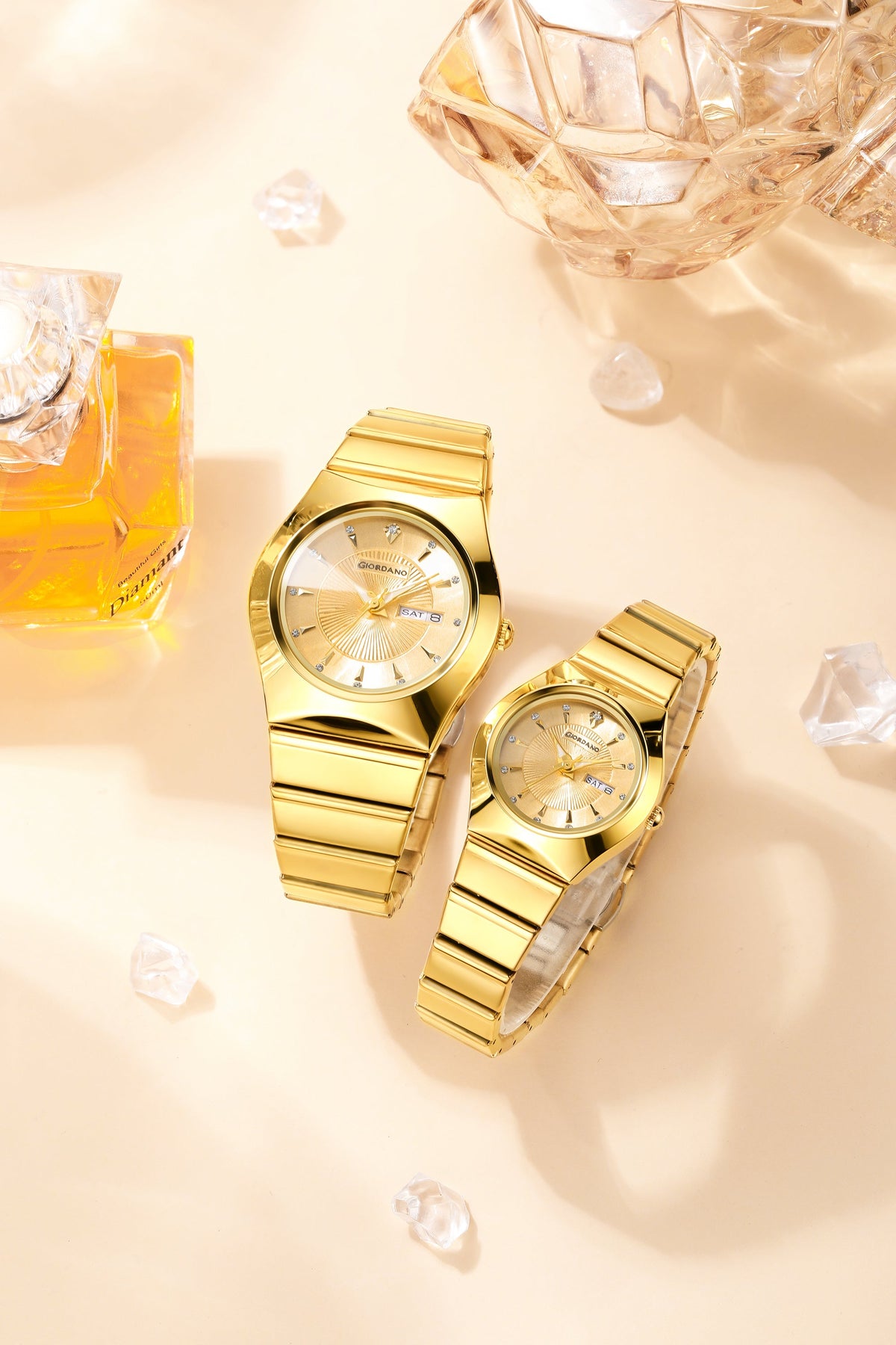 Giordano Analog Pair Watch For Unisex With Round Dial, Crystal Indices , Date Display And Stainless Steel Strap GZ-990-SET-11