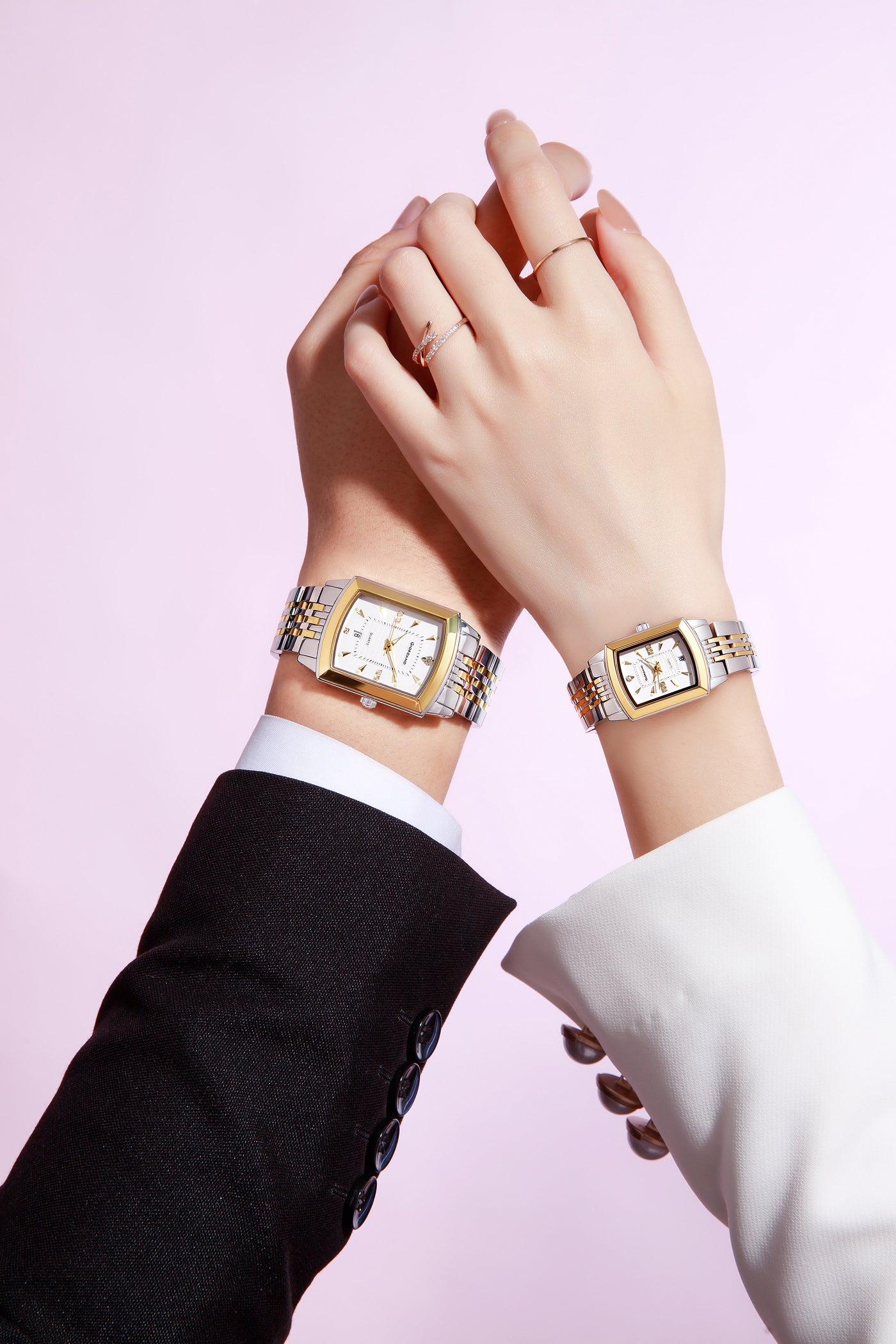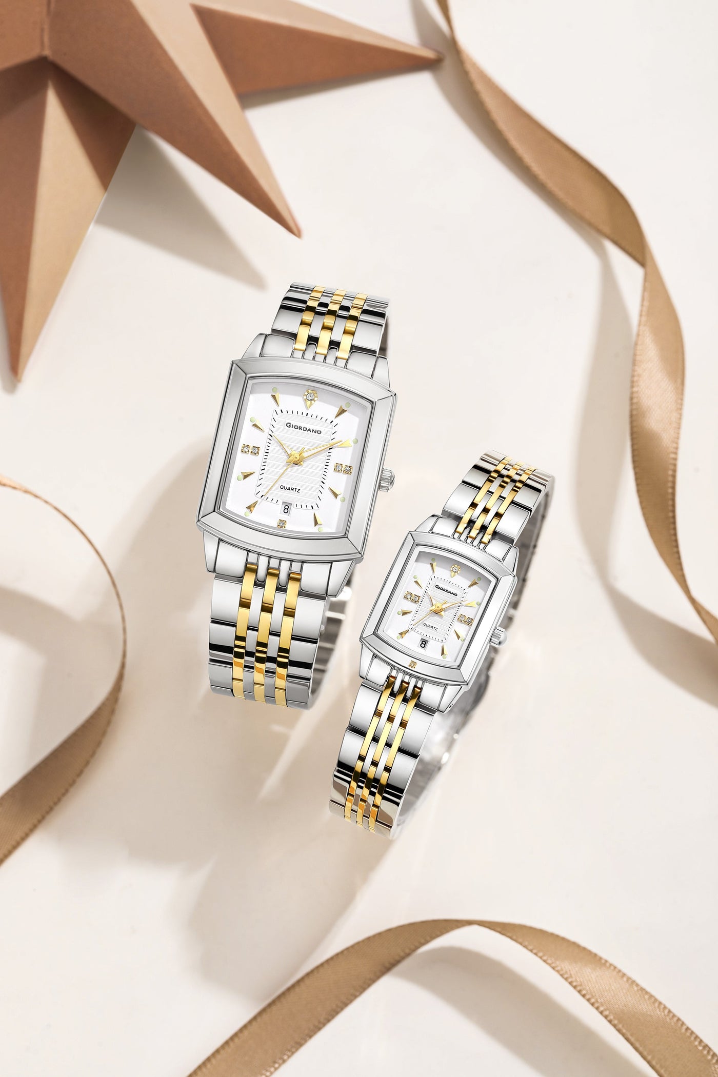 Giordano Analog Pair Watch For Unisex With Round Dial, Crystal Indices , Date Display And Stainless Steel Strap GZ-991-SET-22