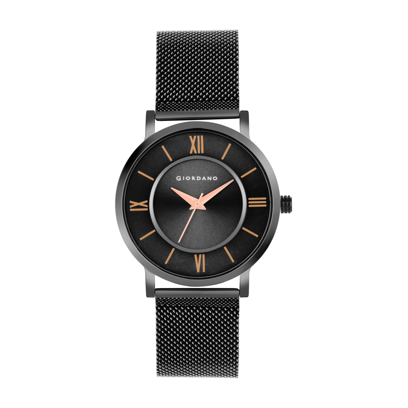 Giordano Rose Gold Analog Stylish Watch for Couple with Stylish dial with Roman Indicess and mesh Metal Strap GD-1172-SETA-66