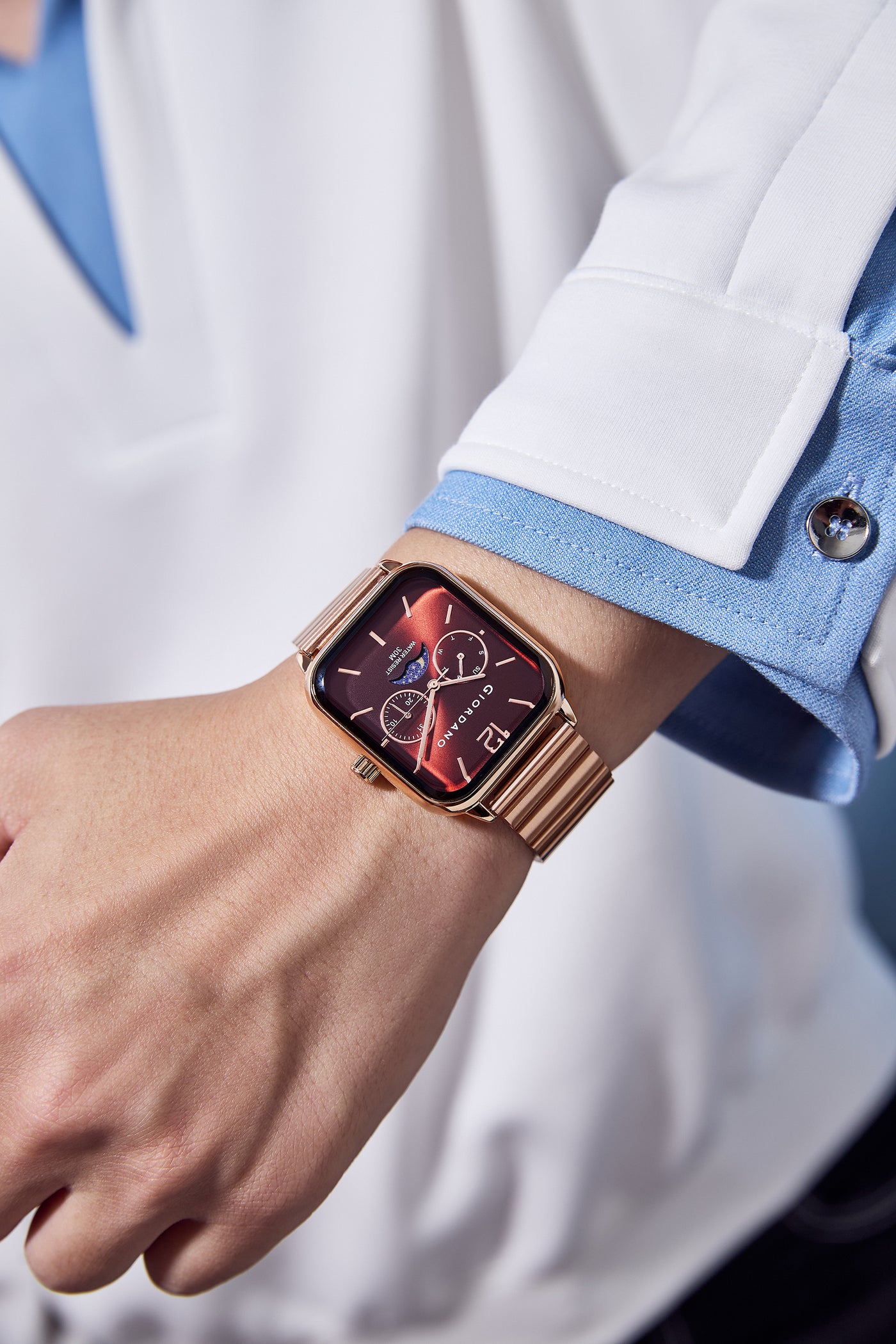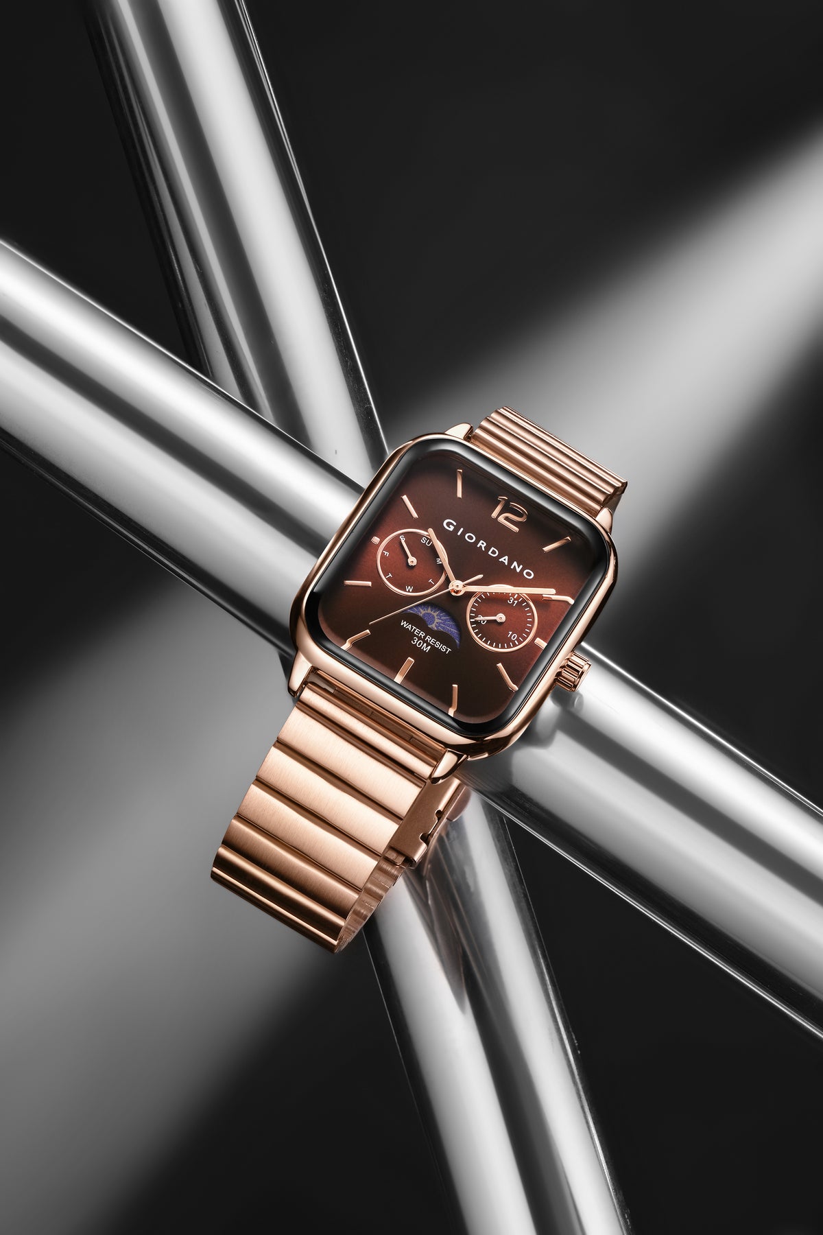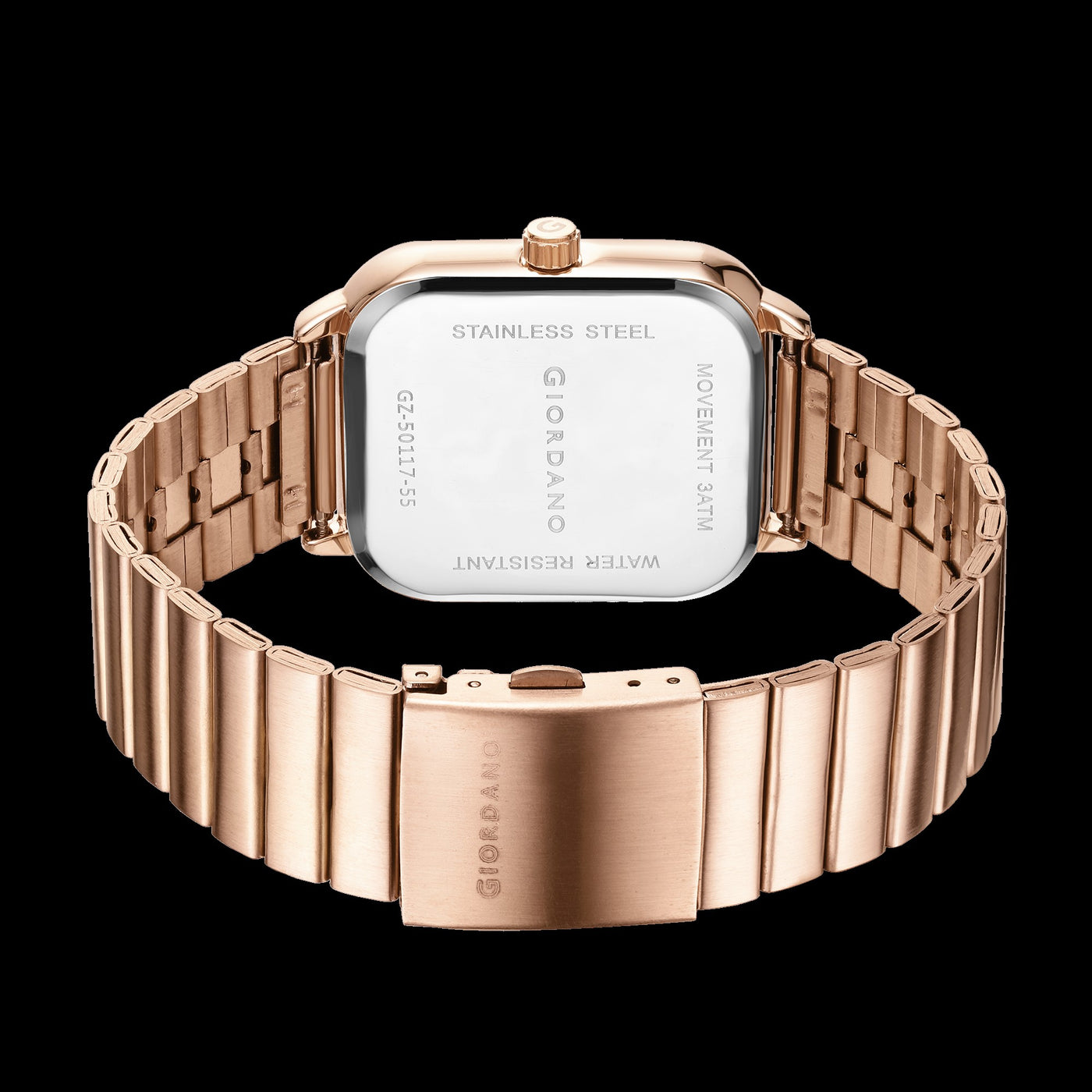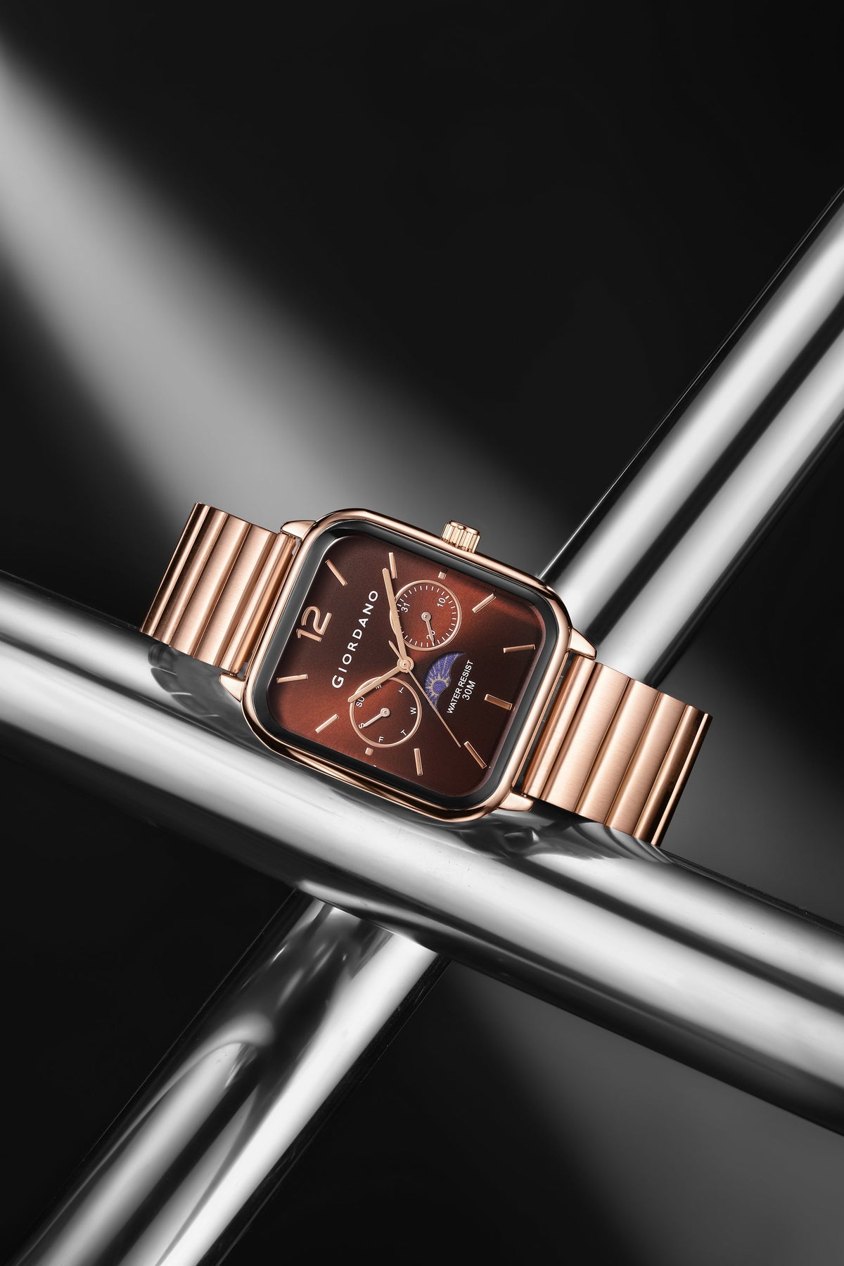 Giordano Silver Classic Square Analog Watch for Men with Moon Phase Display and Stainless Steel Strap GZ-50117-55
