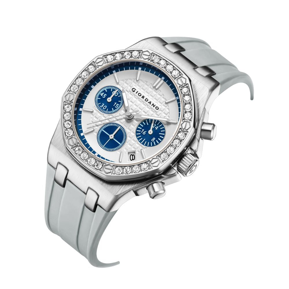 Giordano Chronograph Watch for Women | Stainless Steel Case, Crystal bezel | Modern & Stylish Timepiece with Comfortable Silicone Strap | GZ-50154-11