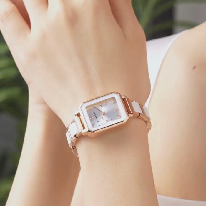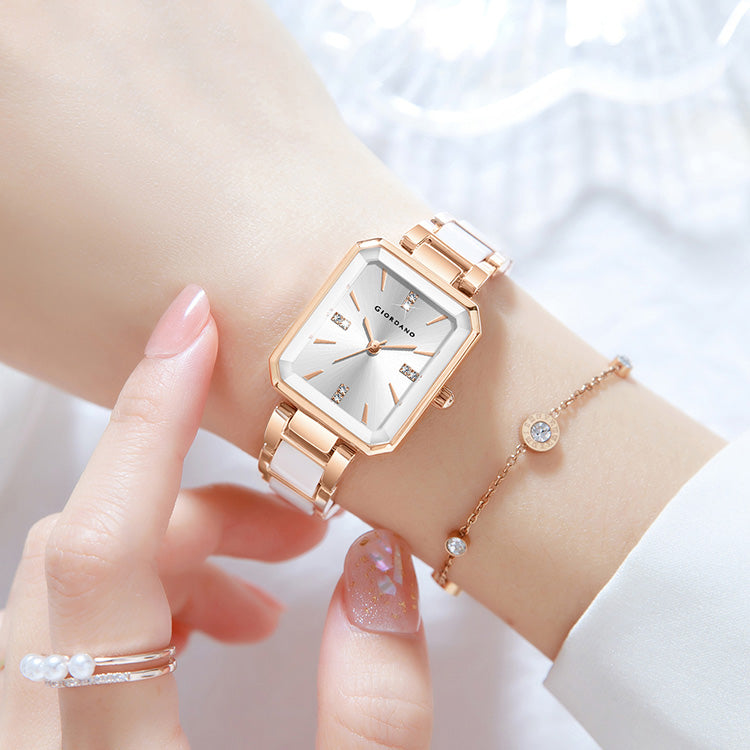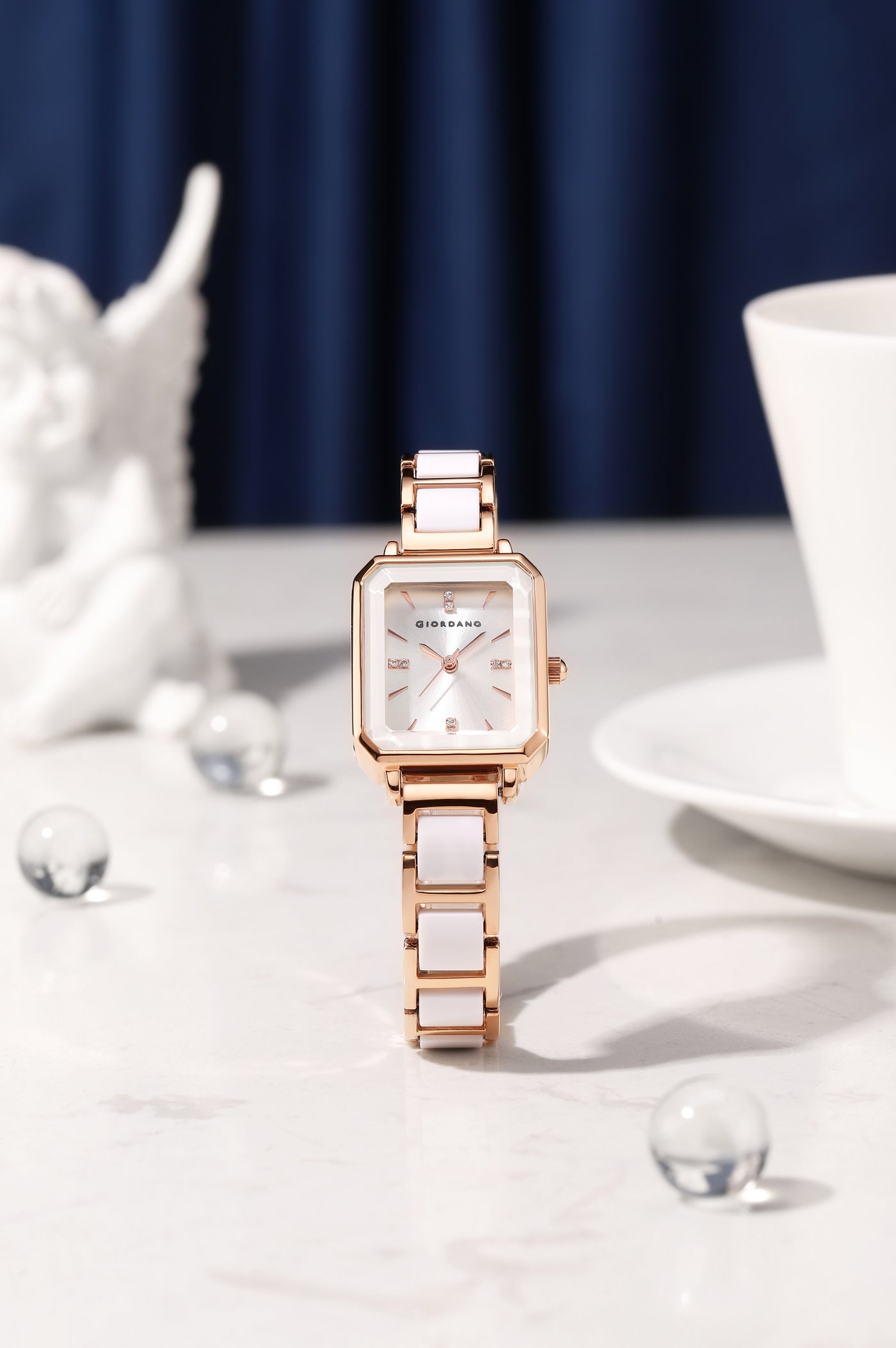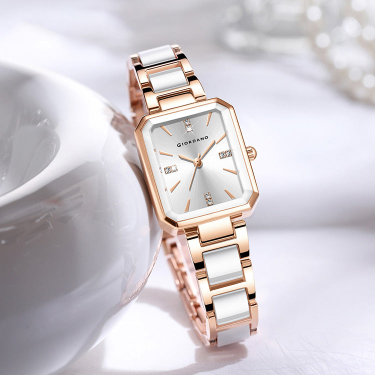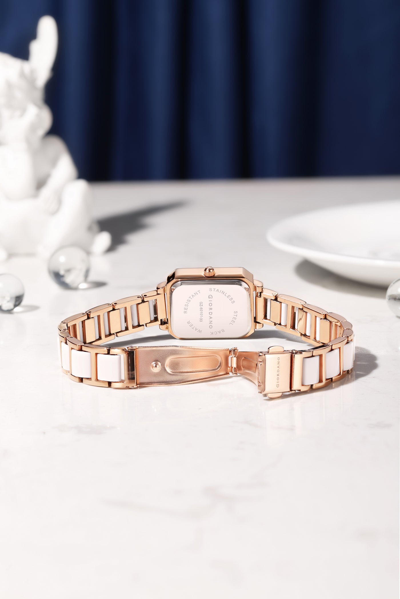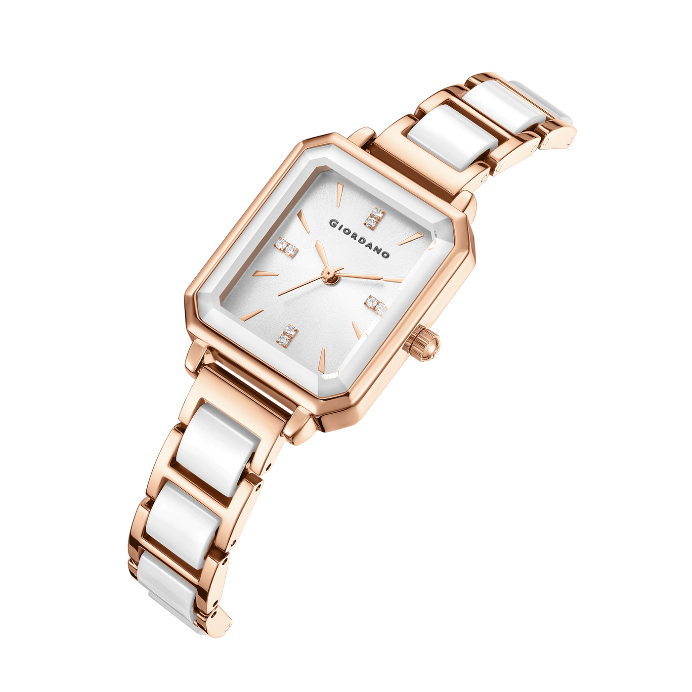 Giordano Classic Rectangular Dial Watch for women with Crystal Markers and dual tone stainless steel Strap GZ-60101-33