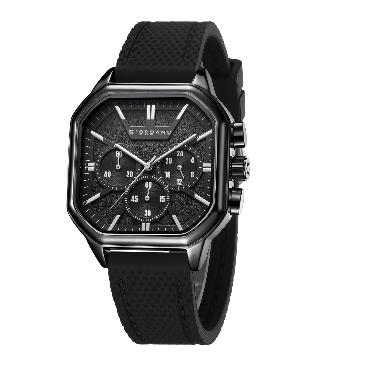 Giordano Analog Chronograph Watch for Men with Square Dial, Multi-Function Subdials, Quartz Movement and Silicone Strap - GZ-50171-11