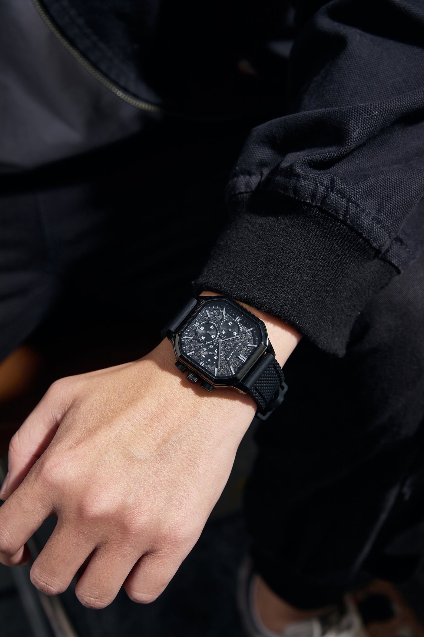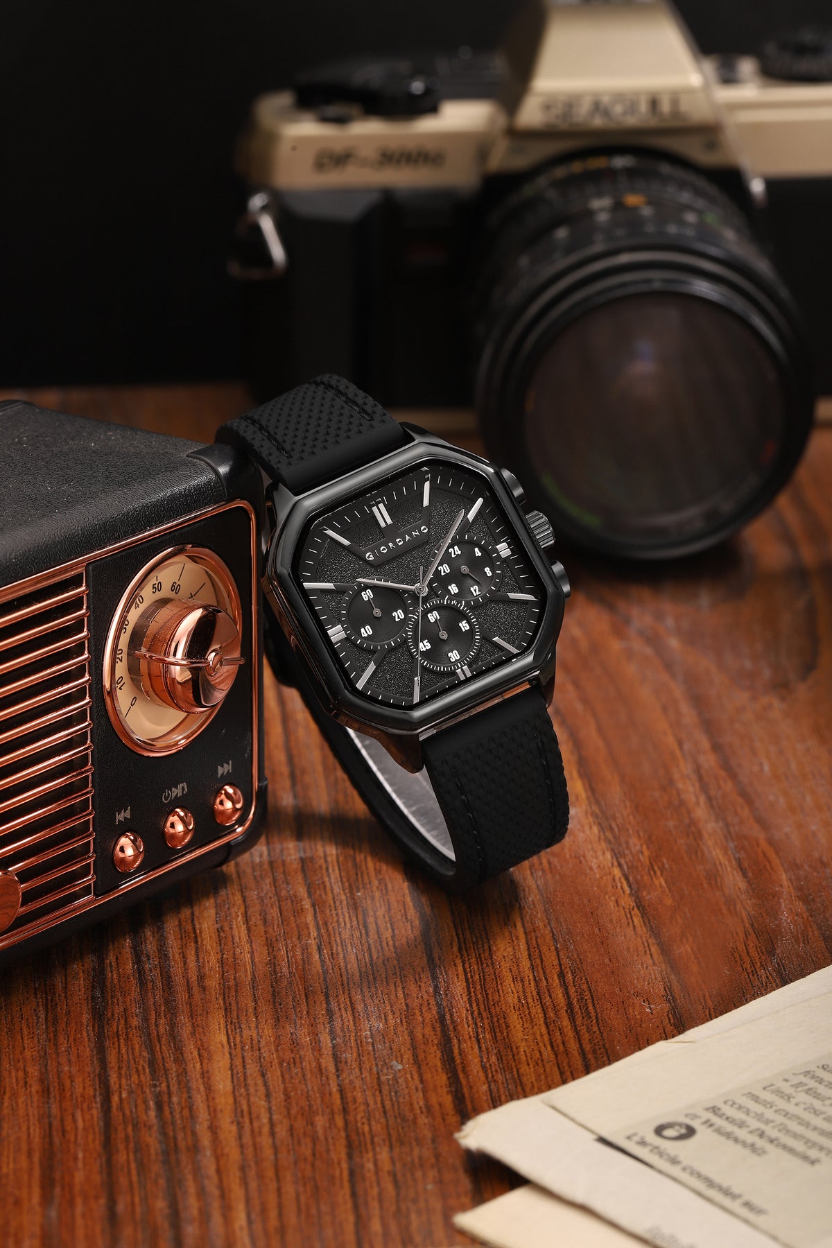 Bold Square Case & Modern Design – Stylish square-shaped case with a textured dial and metallic hour markers delivers a powerful, contemporary look perfect for men who like statement watches.
