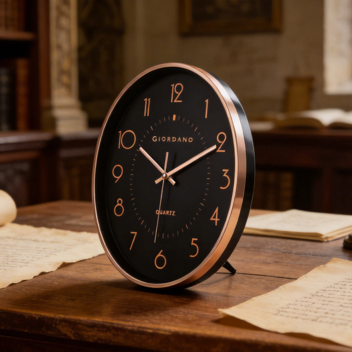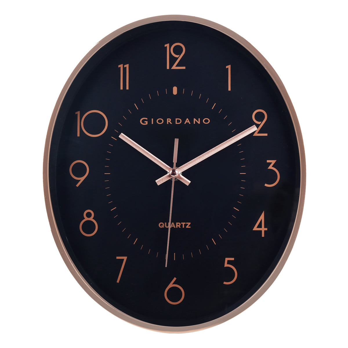 Giordano Wall Clock, Silent Sweep Non-Ticking Quartz Movement, 12.6 Inch(32 cm) HD Glass Black Dial, Rose Gold Oval Plastic Frame, Metal Hand, Modern Decorative Clock for Home & Office - GDCLTY1001